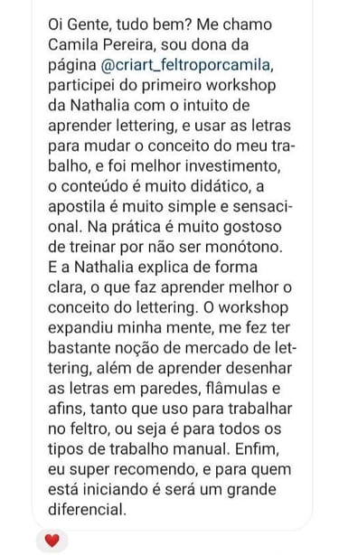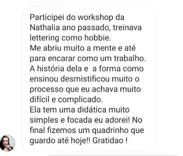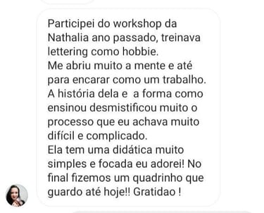 Tenho 31 anos e sou artista e professora de lettering. Há 8 anos conheci o lettering, e vivo exclusivamente da minha arte há 6 anos.